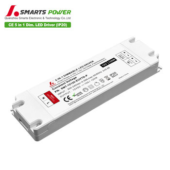 Salida CE 100W 120W 150W IP20 Transformador de fuente de alimentación Led de plástico Triac y 0-10V (5 en 1) Controlador Led regulable 12V 24V